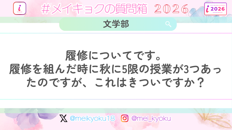 【文学部】履修を組んだ時に秋に5限の授業が3つあったのですが、これはきついですか?