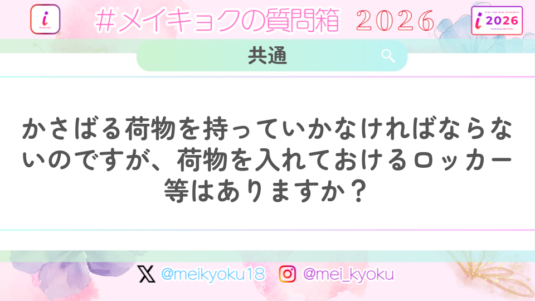共通 【共通】かさばる荷物を持っていかなければならないのですが、荷物を入れておけるロッカー等はありますか?