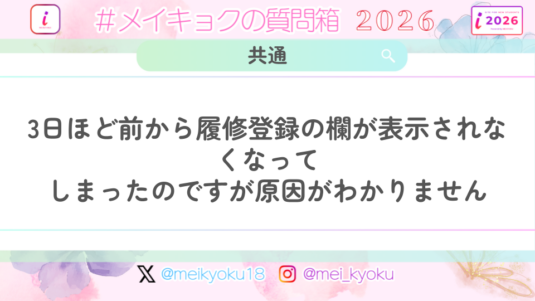 未分類 【共通】3日ほど前から履修登録の欄が表示されなくなってしまったのですが原因がわかりません