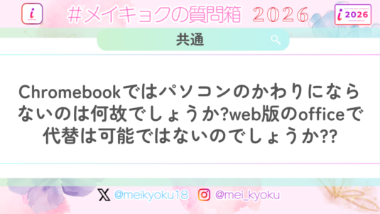 未分類 【共通】Chromebookではパソコンのかわりにならないのは何故でしょうか?web版のofficeで代替は可能ではないのでしょうか??