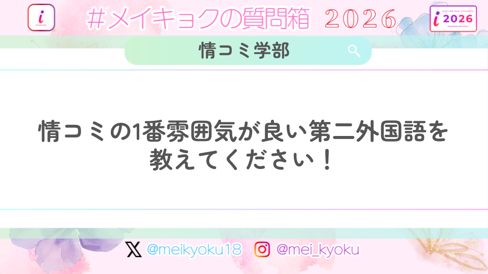- Q【情コミ学部】情コミの1番雰囲気が良い第二外国語を教えてください!