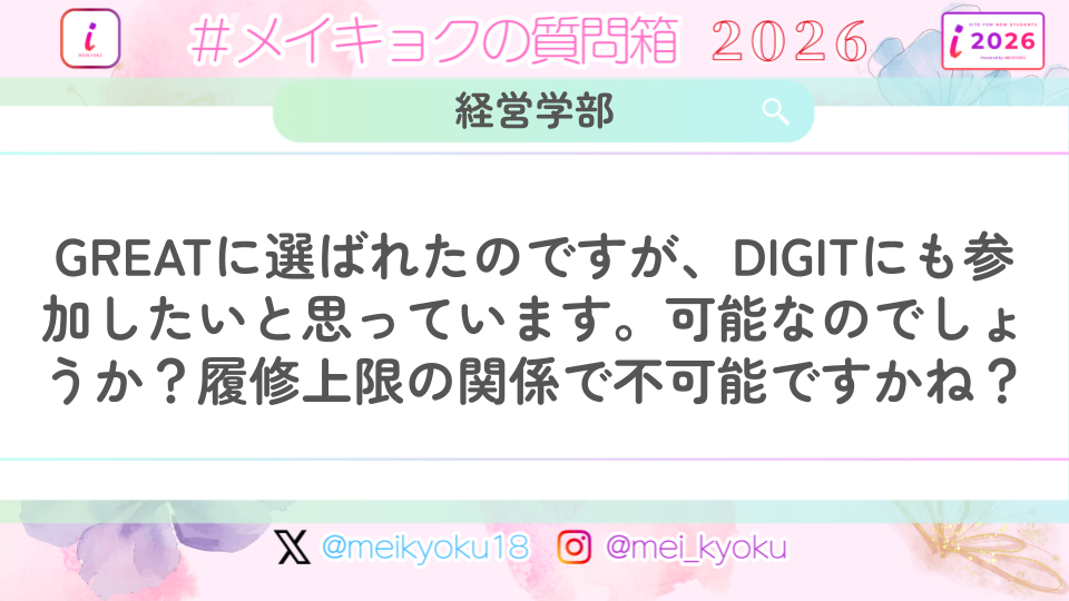 【経営学部】GREATに選ばれたのですが、DIGITにも参加したいと思っています。可能なのでしょうか?履修上限の関係で不可能ですかね?