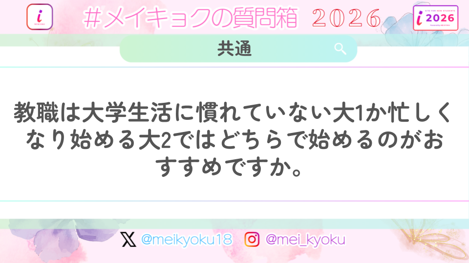 【共通】教職は大学生活に慣れていない大1か忙しくなり始める大2ではどちらで始めるのがおすすめですか。